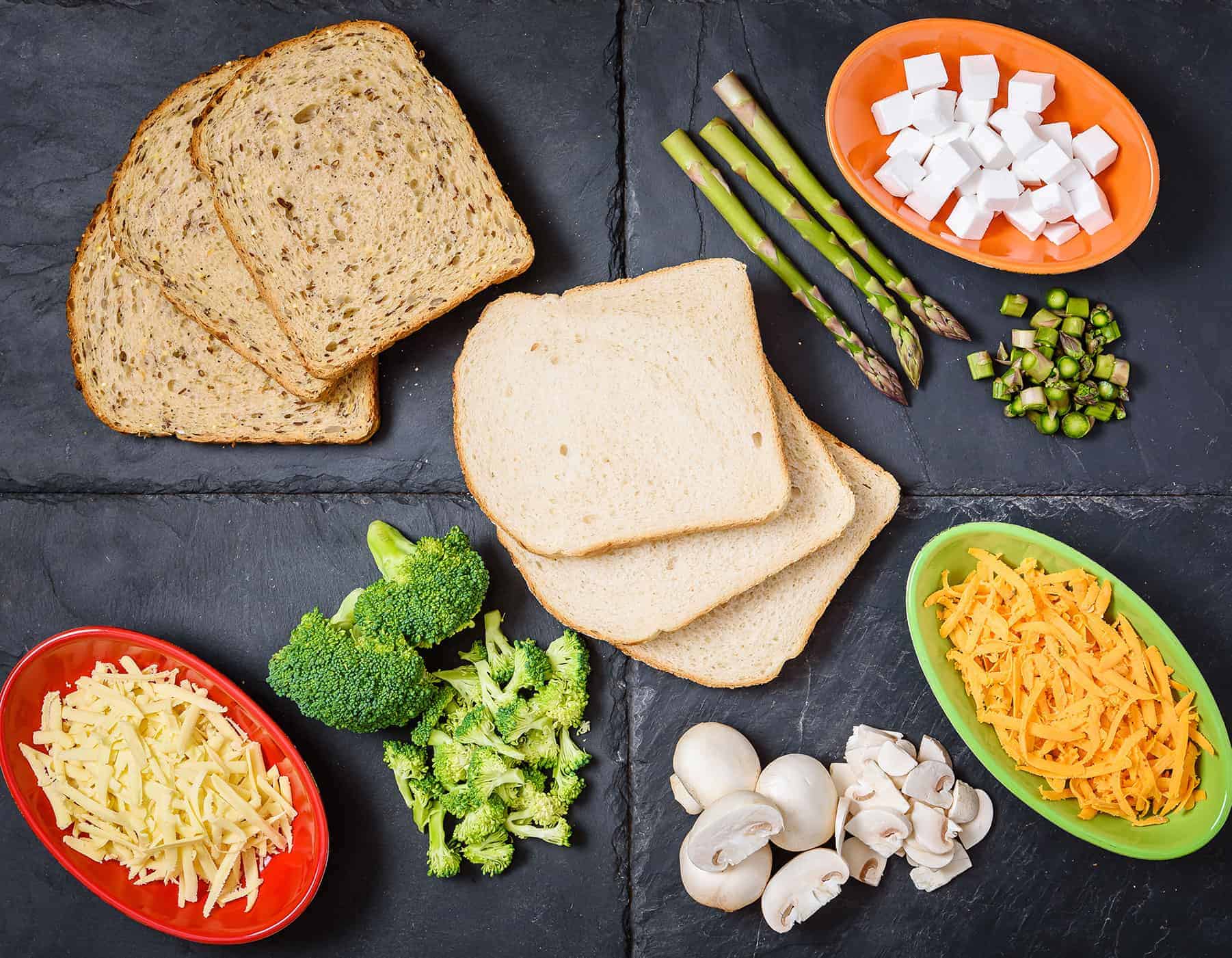 Ensure the mushrooms, broccoli, and asparagus are sliced quite small so that you can fit them into the baked bread cases.